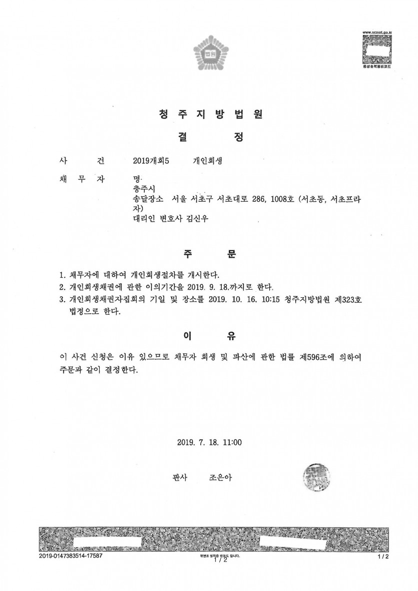 ***현재도 사업을 하고 있으며, 수입에서 최저생계비를 제외한 나머지를 변제금으로 하여 24%의 변제율로 개시결정이 된 사례입니다.