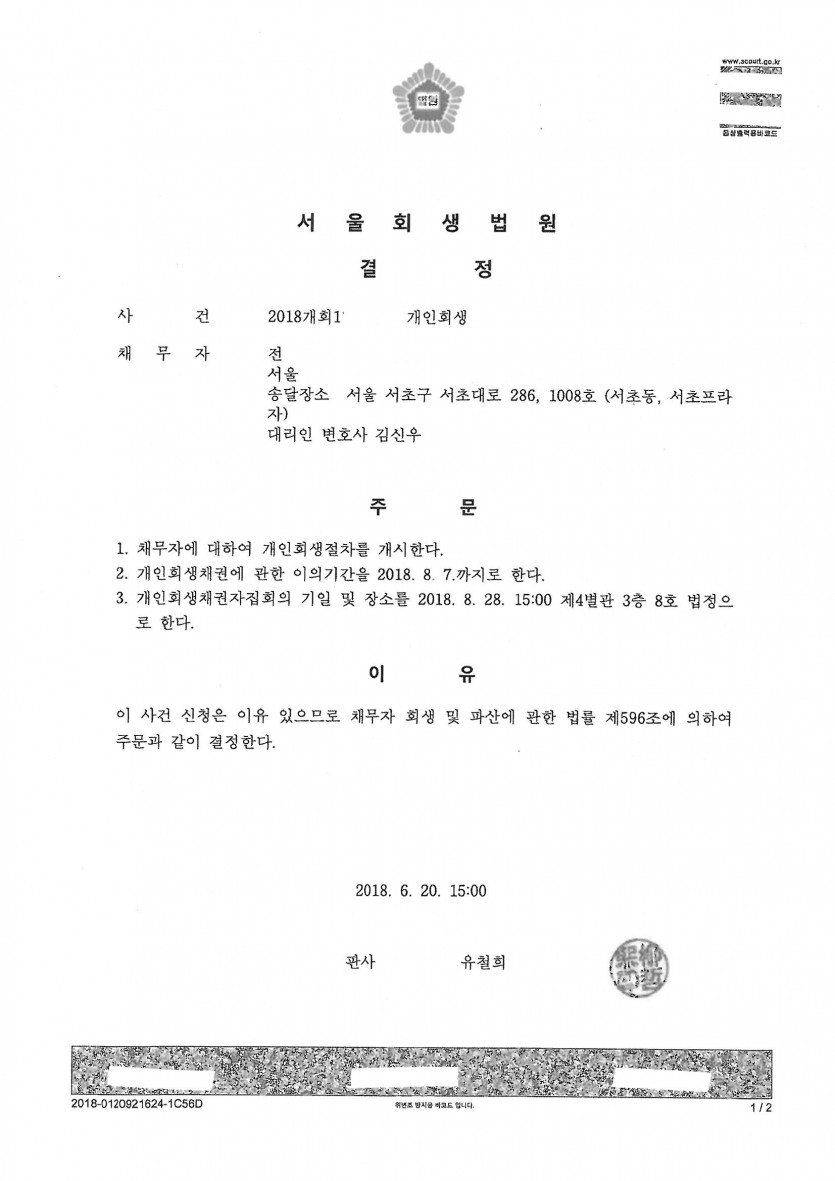 2. 접수 법원: 서울회생법원