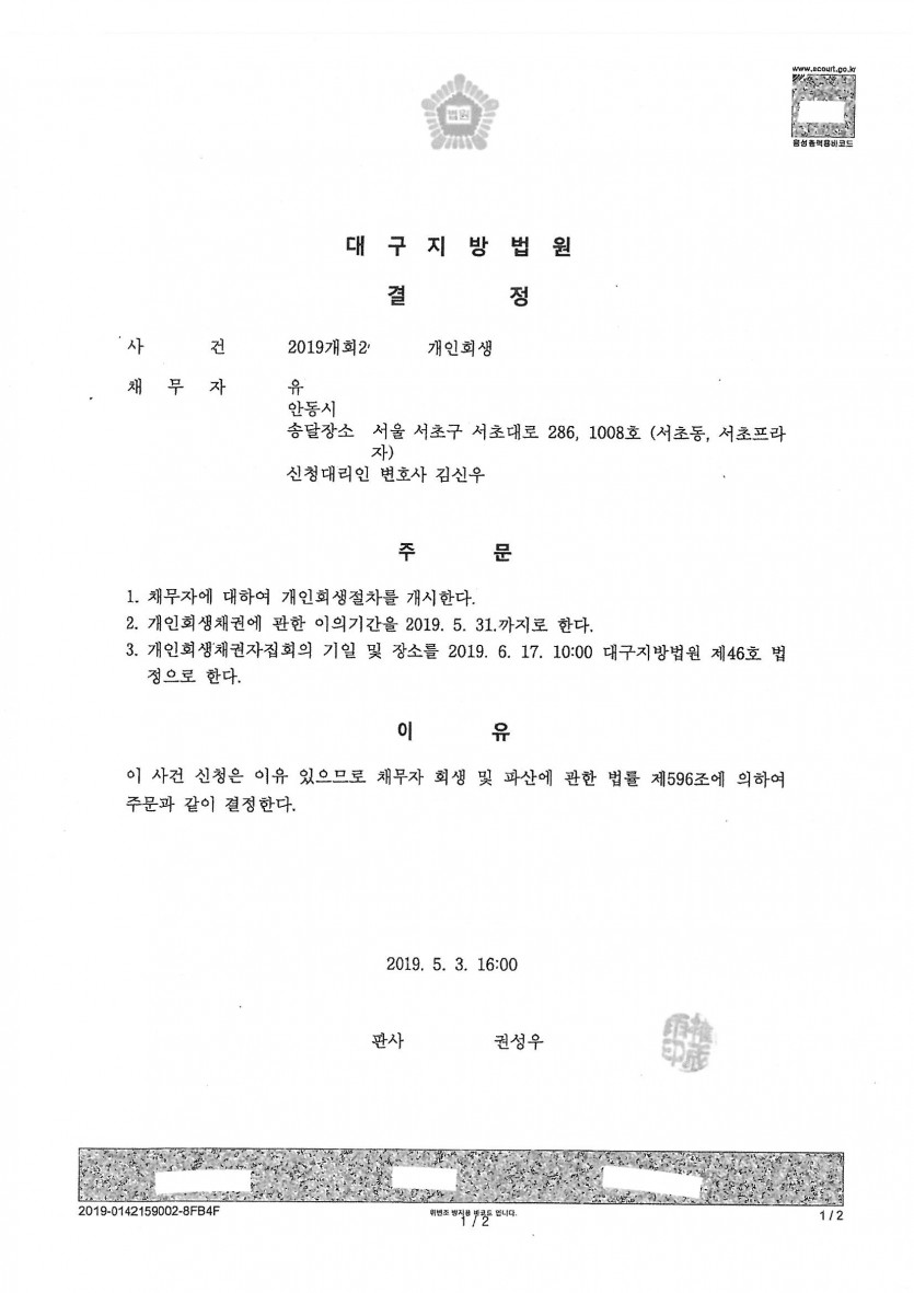 2. 접수 법원: 대구지방법원