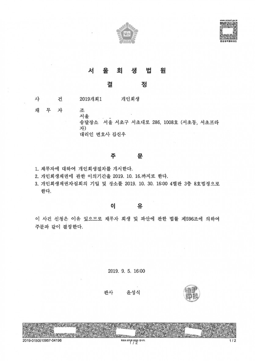 ***세번째 개인회생 신청건이며 최근 취업으로 인가 후 소득에 대한 자료를 제출해야 한다는 변제계획안의 기타사항 보정이 있었습니다.