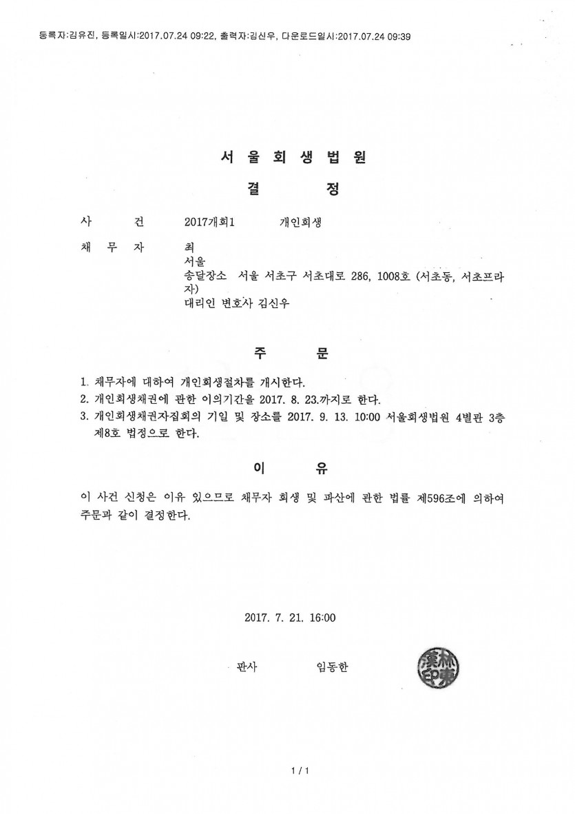 2. 접수 법원: 서울회생법원