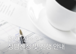 - 진행 : 업무시간 중 언제나 상시상담 가능. 홈페이지 또는 전화를 통하여 방문시간을 사전 예약을 하시면 더욱 정확한 상담이 가능합니다.